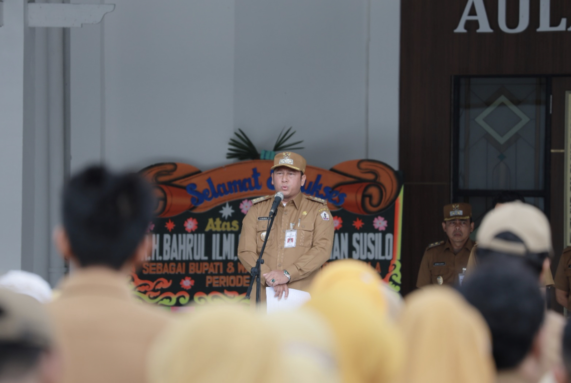 Dalam amanatnya, Bupati Bahrul Ilmi mengawali sambutannya dengan mengucapkan selamat menunaikan ibadah puasa kepada seluruh ASN. Ia mengajak mereka untuk memperbanyak amal dan meraih keberkahan di bulan suci Ramadan.