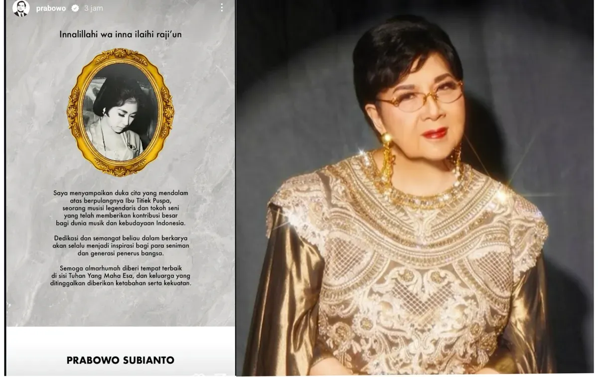 “Saya menyampaikan duka cita yang mendalam atas berpulangnya Ibu Titiek Puspa, seorang musisi legendaris dan tokoh seni yang telah memberikan kontribusi besar bagi dunia musik dan kebudayaan Indonesia,” tulis Presiden Prabowo dalam unggahan ceritanya.