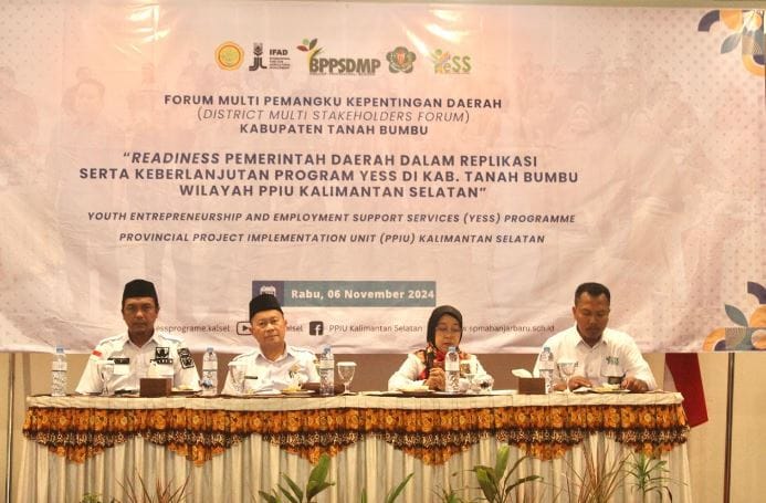 Bupati Tanbu Zairullah Azhar di wakili Asisten Perekonomian dan Pembangunan, Eryanto Rais, membuka kegiatan DMSF ke-2 Program YESS Tahun 2024 yang bertemakan “Readiness Pemerintah Daerah dalam replikasi serta keberlanjutan Program YESS di Kabupaten Tanah Bumbu wilayah PPIU Kalimantan Selatan”.